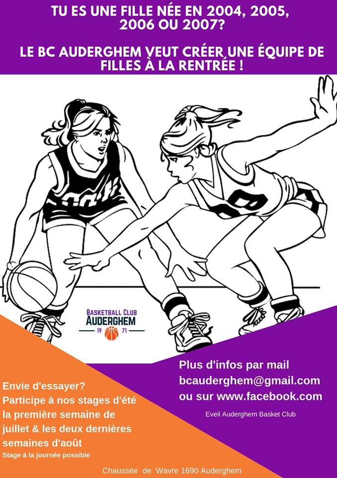 Tu es une fille née en 2004, 2005, 2006, 2007? Le BC Auderghem veut créer une équipe de fille à la rentrée! Envie d’essayer? Participe à nos stages d’été.